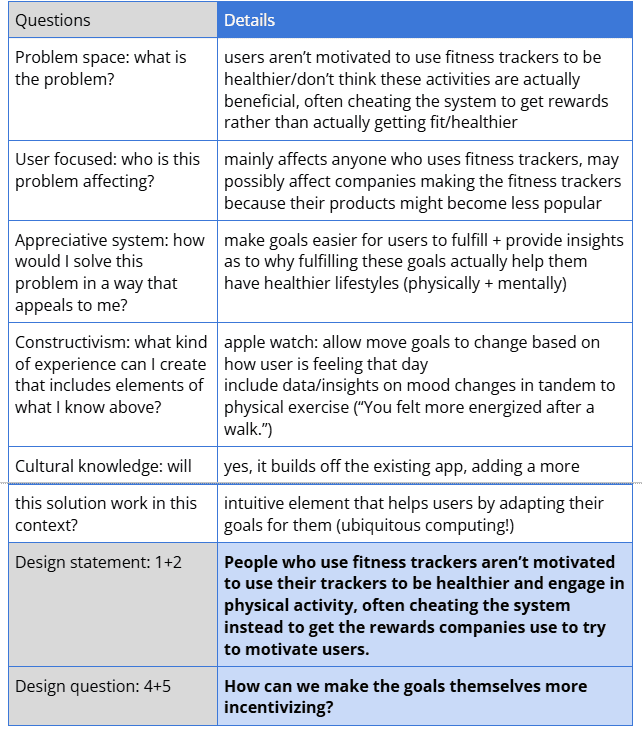 We explored how fitness trackers influence behavior and motivation. The process included: