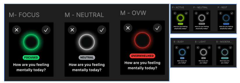 we created a simple daily check-in prototype. Users answer three quick questions about: