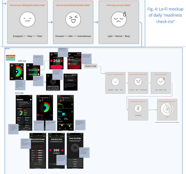 We started by analyzing the Apple Watch experience to see where our Adaptive Goals feature could fit naturally. This helped identify gaps and opportunities to improve user experience without disrupting familiar workflows.