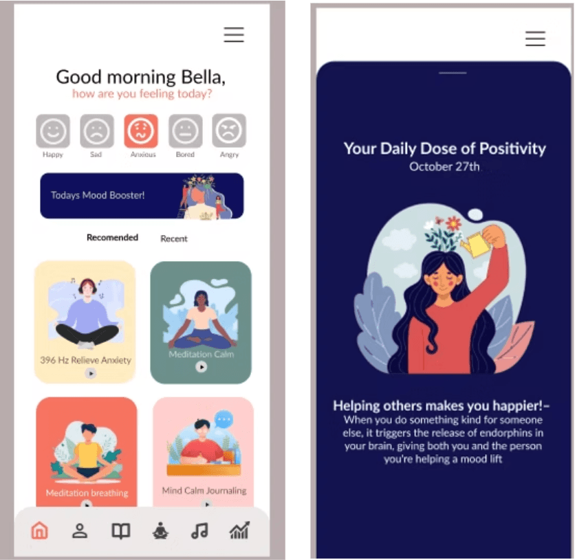 📊 Data personalizes experience – Mood tracking and suggestions make the app responsive to each user.