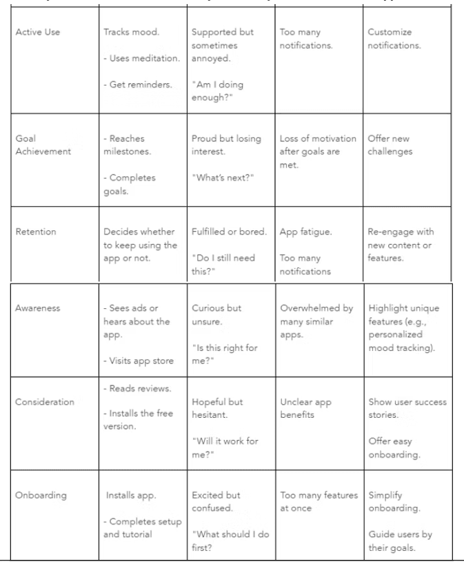 Most requested features: quick stress relief activities, personalized content, simple journaling prompts