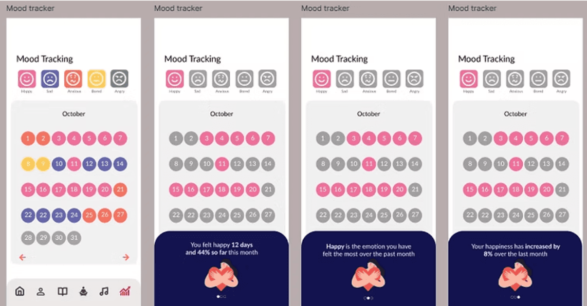 (e.g., “You felt calm 70% of days this month”) to better understand emotional patterns over time.